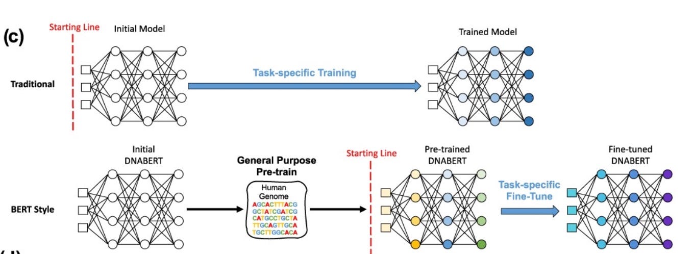 Ji, Y., Zhou, Z., Liu, H., & Davuluri, R. V. (2021, August). DNABERT: pre-trained Bidirectional Encoder Representations from Transformers model for DNA-language in genome. Bioinformatics, 37(15), 2112-2120. Oxford University Press. https://doi.org/10.1093/bioinformatics/btab083
