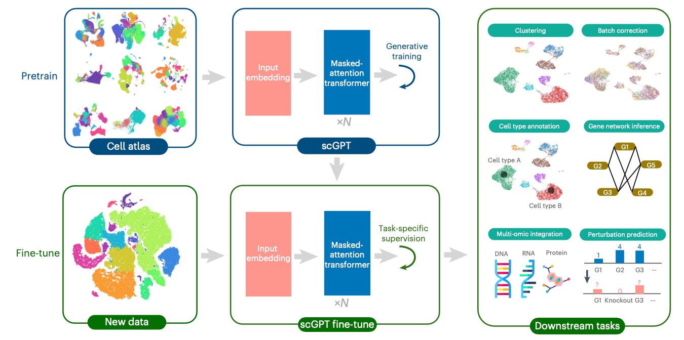Cui, H., Wang, C., Maan, H., Pang, K., Luo, F., Duan, N., & Wang, B. (2024). scGPT: toward building a foundation model for single cell multi-omics using generative AI. Nature Methods, 21, 1470-1480. https://www.nature.com/articles/s41592-024-02201-0